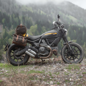 Par défaut la Ducati Scrambler ne se prête pas à l'installation de baggages.