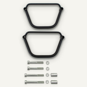 Leur installation est un jeu d'enfant : fixez-les sur le garde-boue arrière à l'aide des deux boulons prévus pour le montage d'accessoires. Si besoin d'écarter davantage les supports de votre moto, utilisez les tubes d'espacement en combinaison avec les longs boulons.