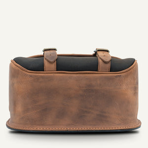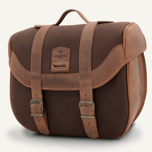Le Roadmaster est une valise à coque rigide fabriquée en cuir tannage végétal et coton cirée imperméable. Son design et ses matières authentiques en font la valise de rêve pour compléter le look d'une moto rétro moderne.