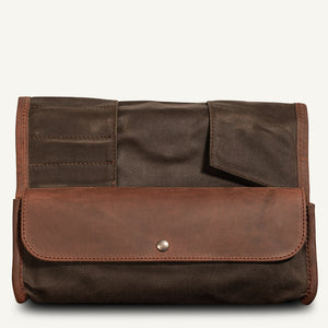 Les 9 encoches du rabat pliable permettent de tenir vos essentiels en place. Vos autres accessoires peuvent être conservés dans la grande trousse interne, fermée par un superbe rabat en cuir pleine fleur.