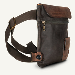 • Le Holster est le sac ultime pour garder vos essentiels près du corps. Sa bandoulière coulissante permet de le porter sur la cuisse, à la taille, dans le dos ou en travers de la poitrine.